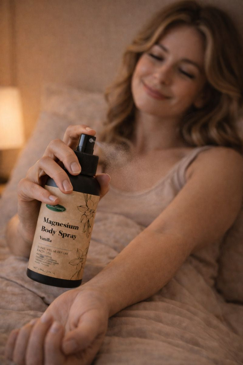 Lightly spray onto clean skin 10–30 minutes before bed.